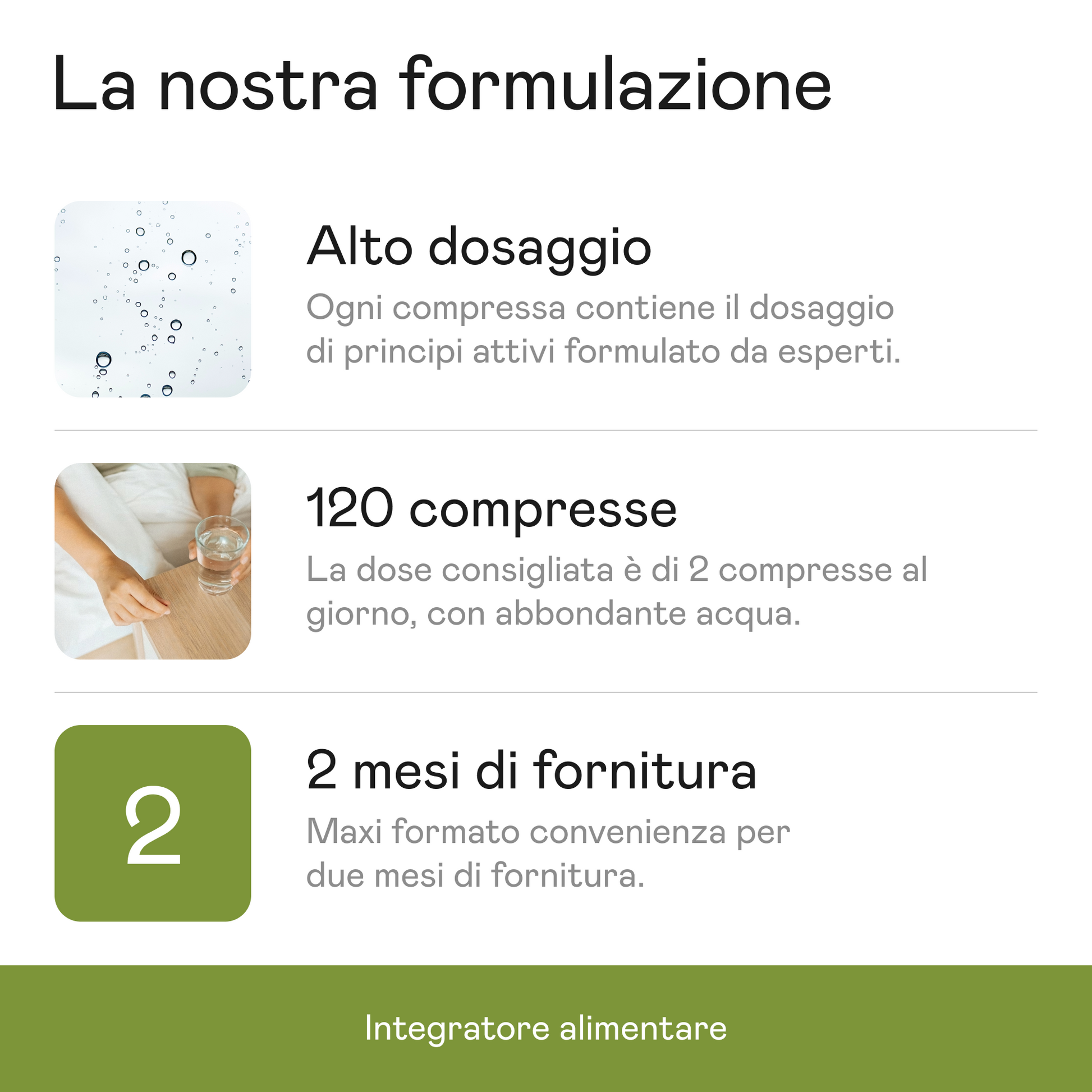 Si consiglia di assumere 2 compresse al giorno, con abbondante acqua