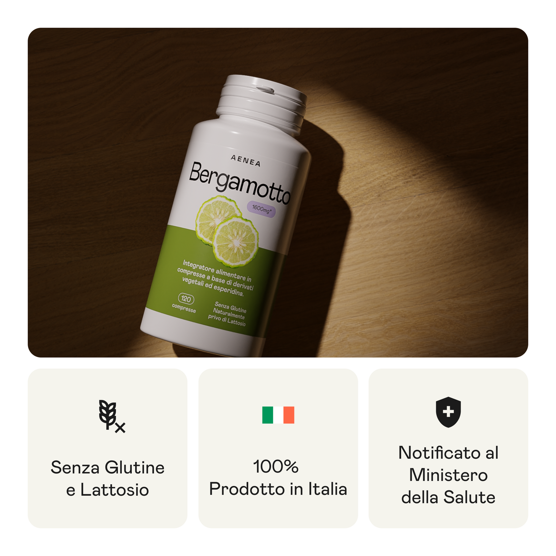 Il Bergamotto è tra gli agrumi più conosciuti originari dell'Italia meridionale, utilizzato da secoli nella medicina tradizionale, utile per favorire in modo naturale la circolazione cardiovascolare e la glicemia nel sangue. Il potere antiossidante del Bergamotto è attribuito ai cosiddetti Bioflavonoidi, un gruppo di polifenoli presenti naturalmente in quantità elevate nei frutti e che apportano tali effetti benefici