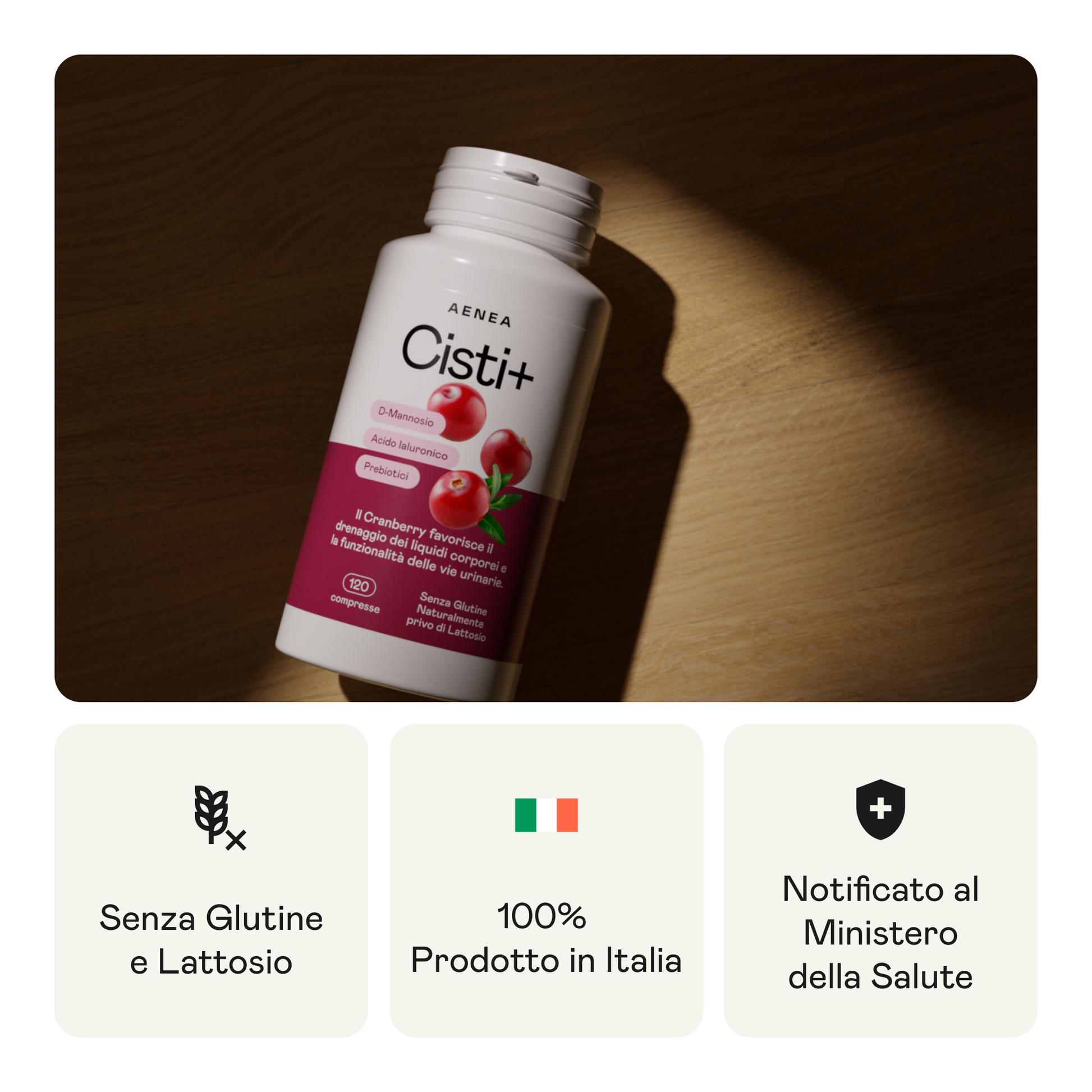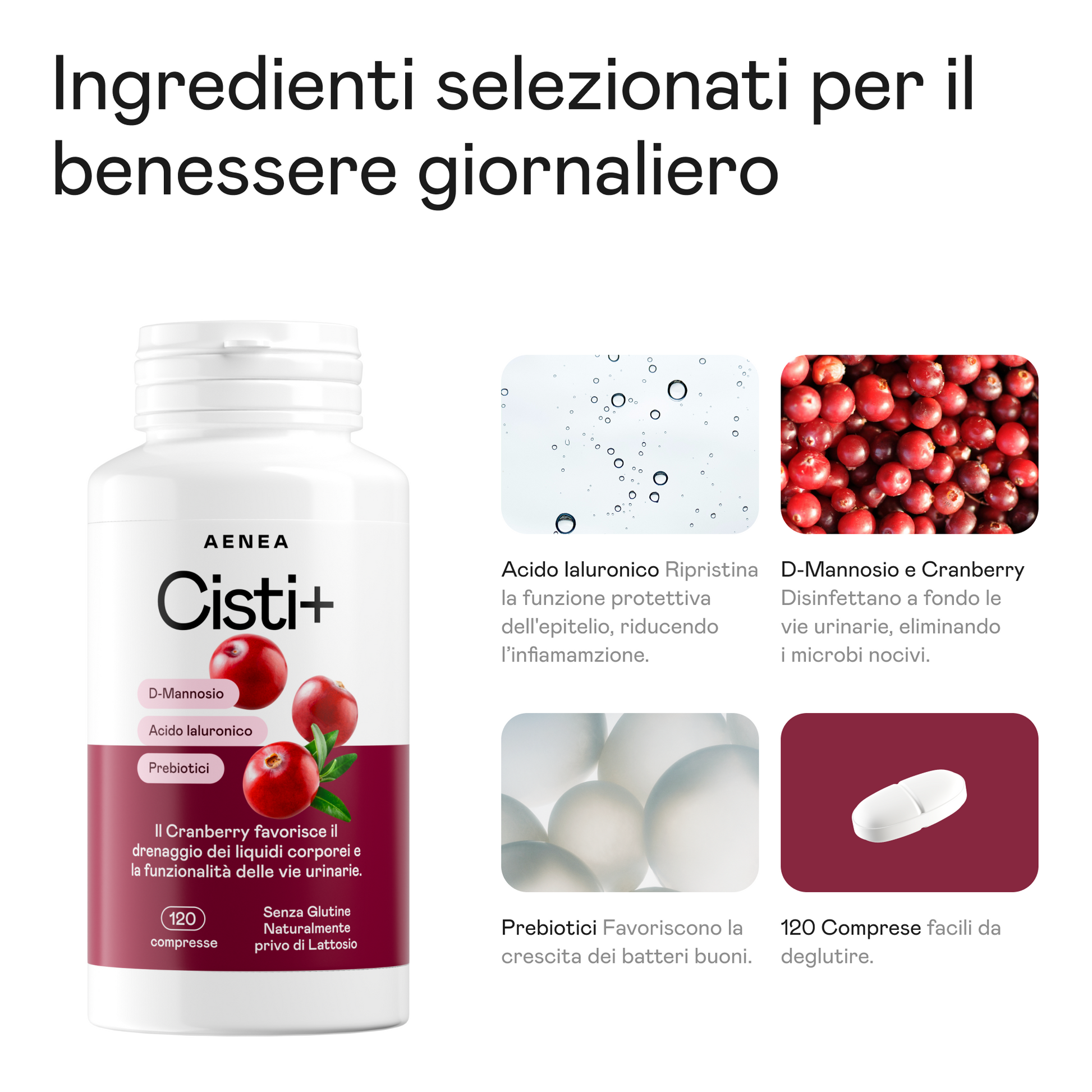- Ingredienti: D-mannosio, Mirtillo Rosso (Cranberry), Acido Ialuronico