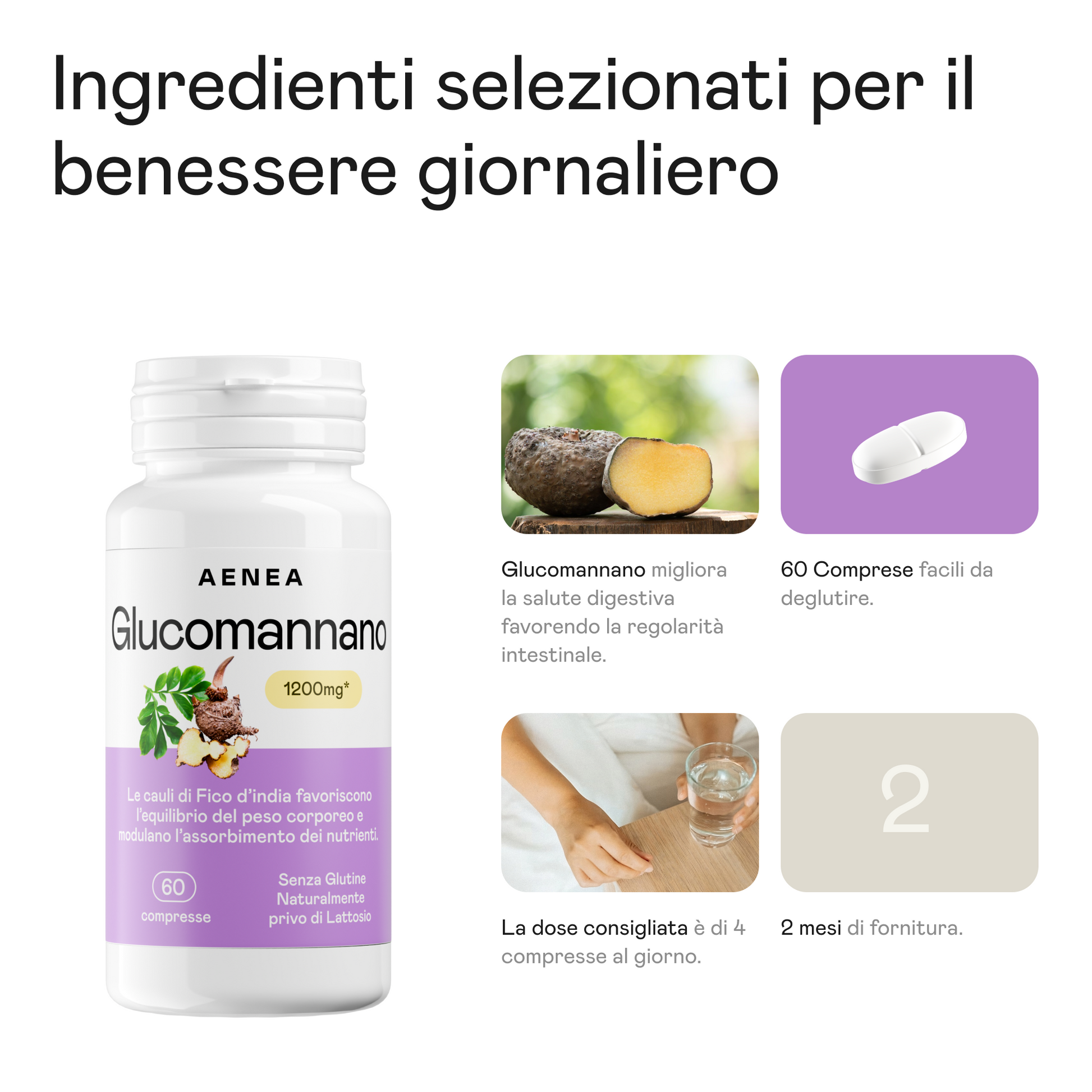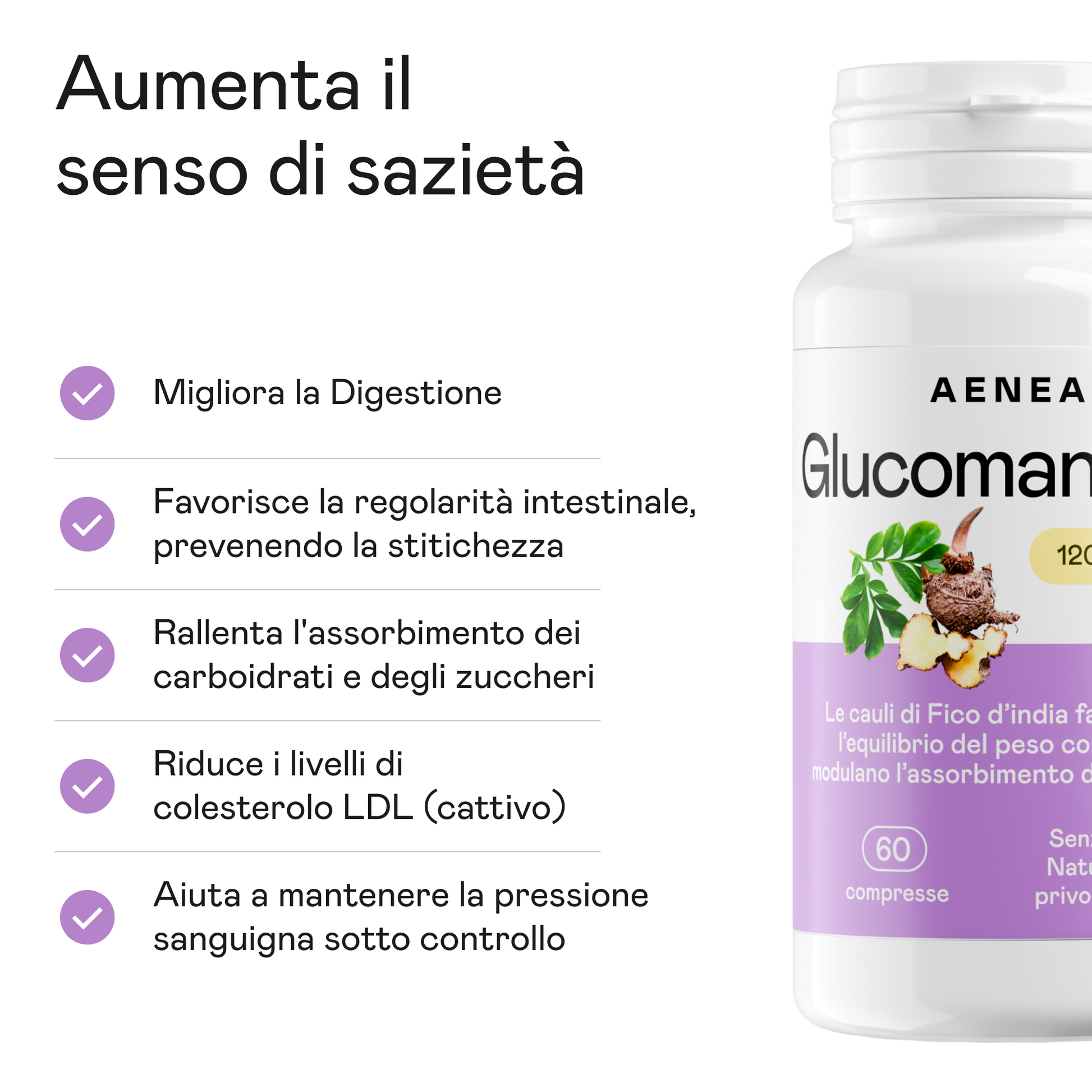 Ingredienti per 4 compresse: Glucomannano 1200mg, Fico d'India e.s.D/E 4:1 400mg