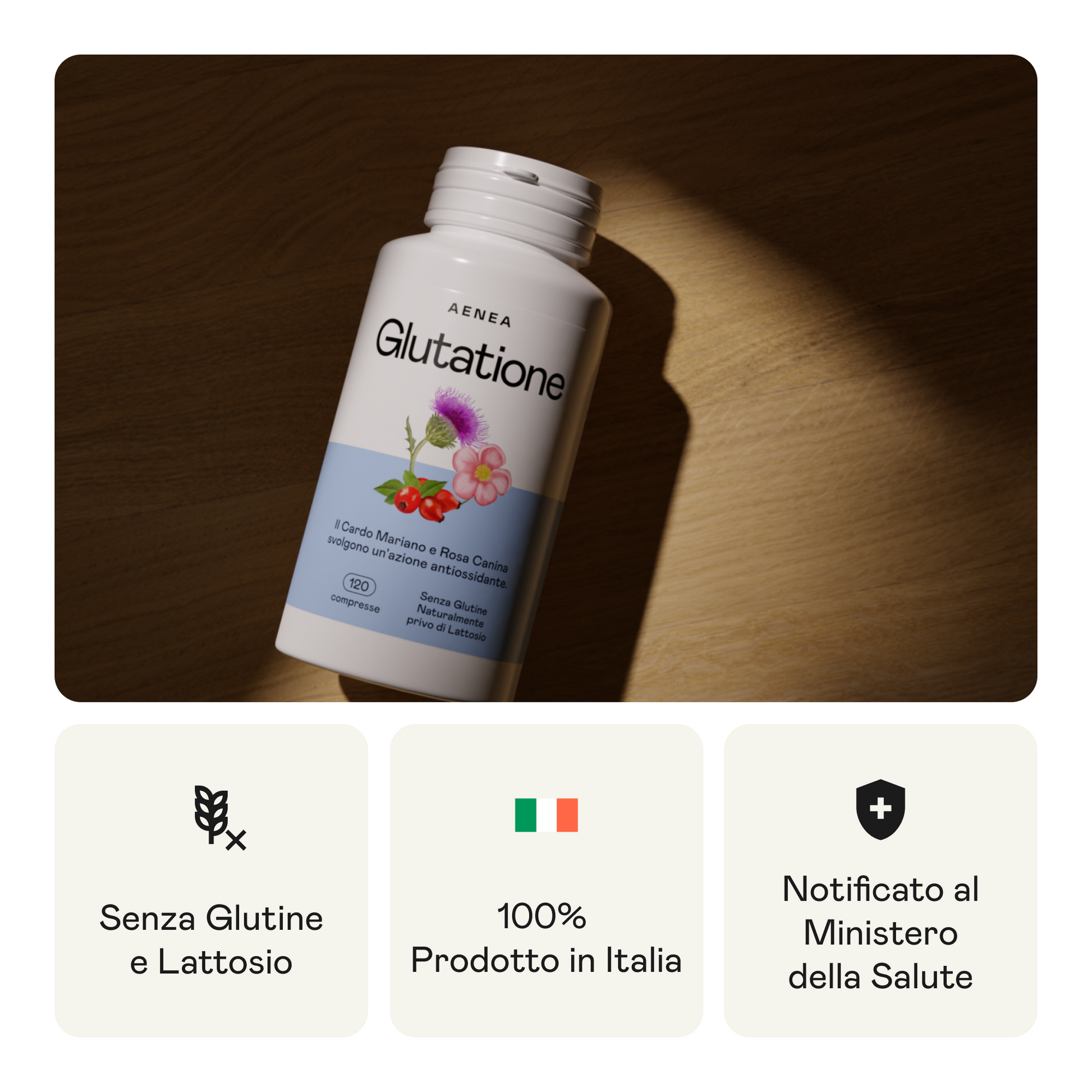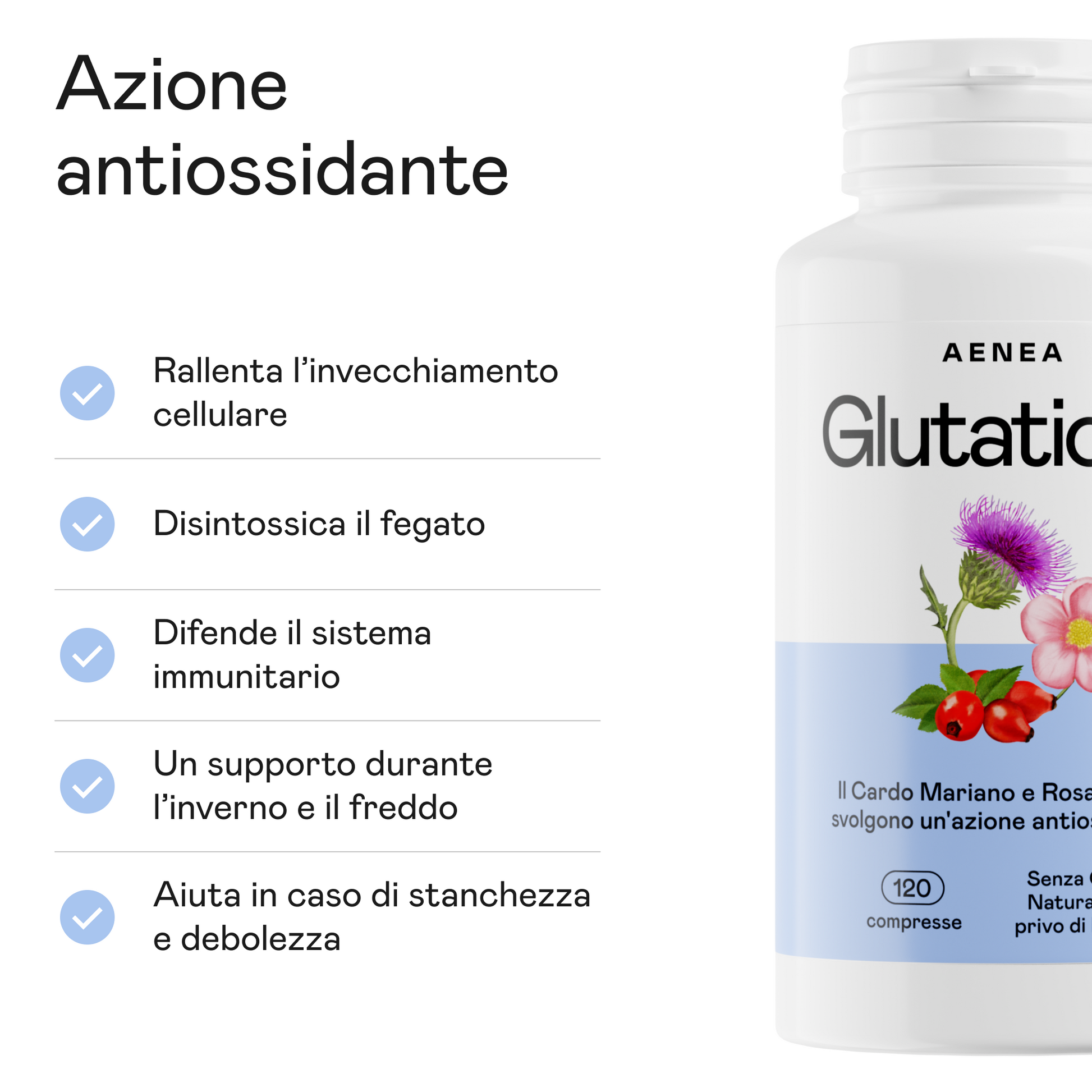 - Ingredienti: Glutatione ridotto, Cardo mariano, Rosa canina
