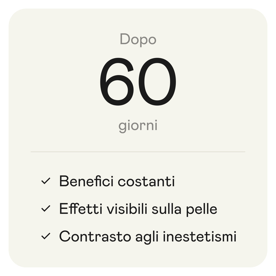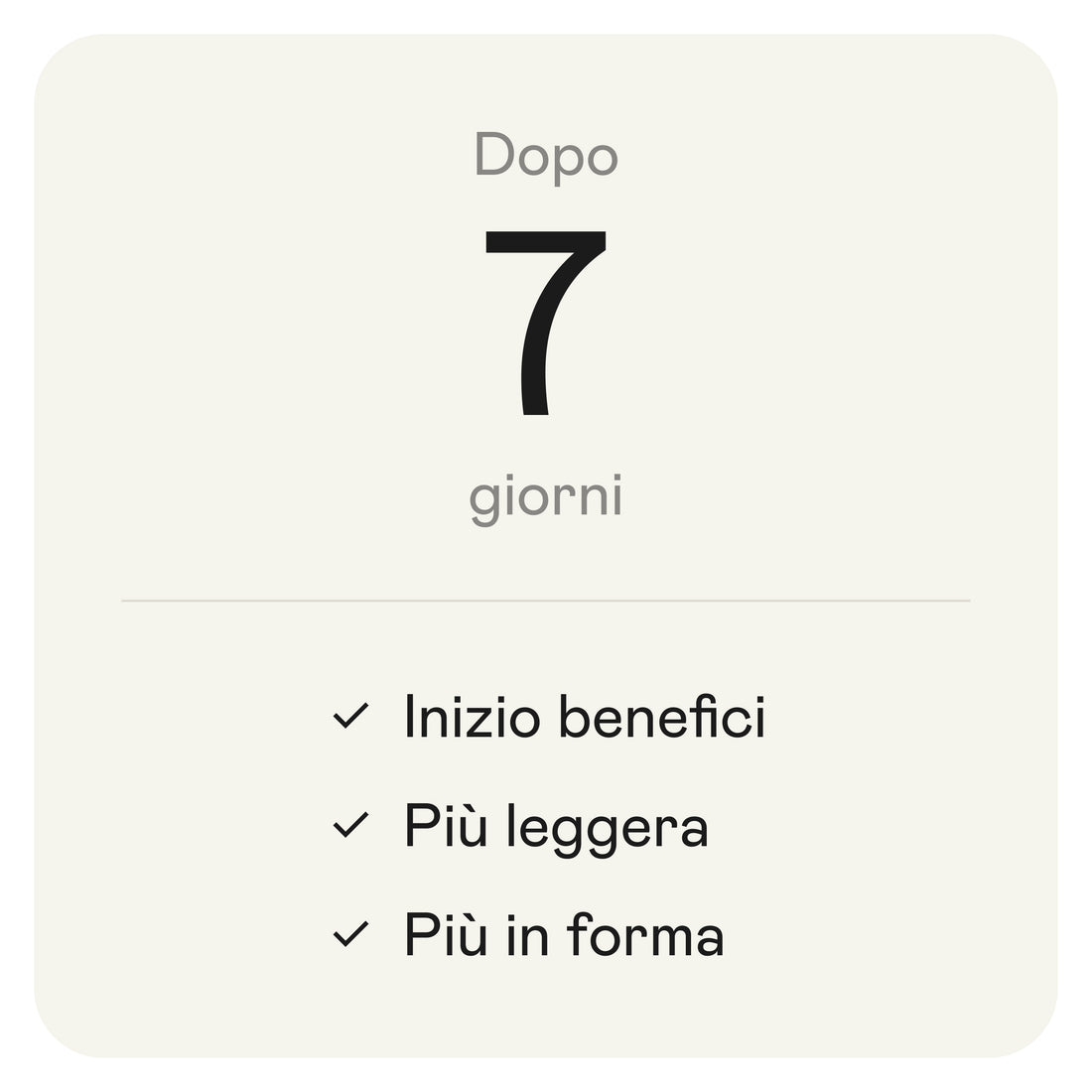 Il kit ha una durata di 30 giorni. Ma è solo un inizio, potrai poi mantenere l'assunzione giornaliera costante