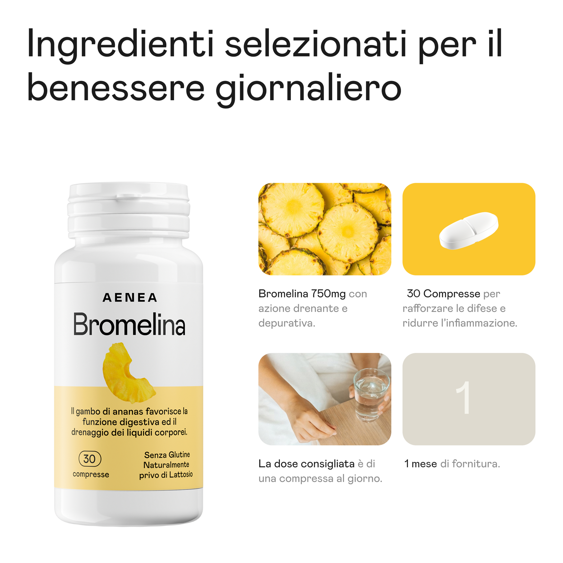 Ingredienti per 1 compressa di Bromelina: Bromelina 750mg