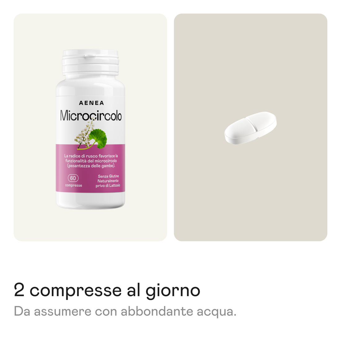 - 2 compresse al giorno di Microcircolo, lontano dai pasti principali (pranzo e cena)