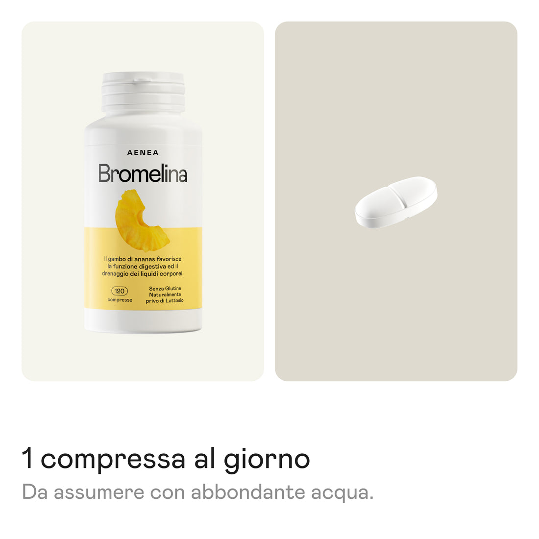 - 1 compressa al giorno di Bromelina, lontano dai pasti principali (pranzo e cena)