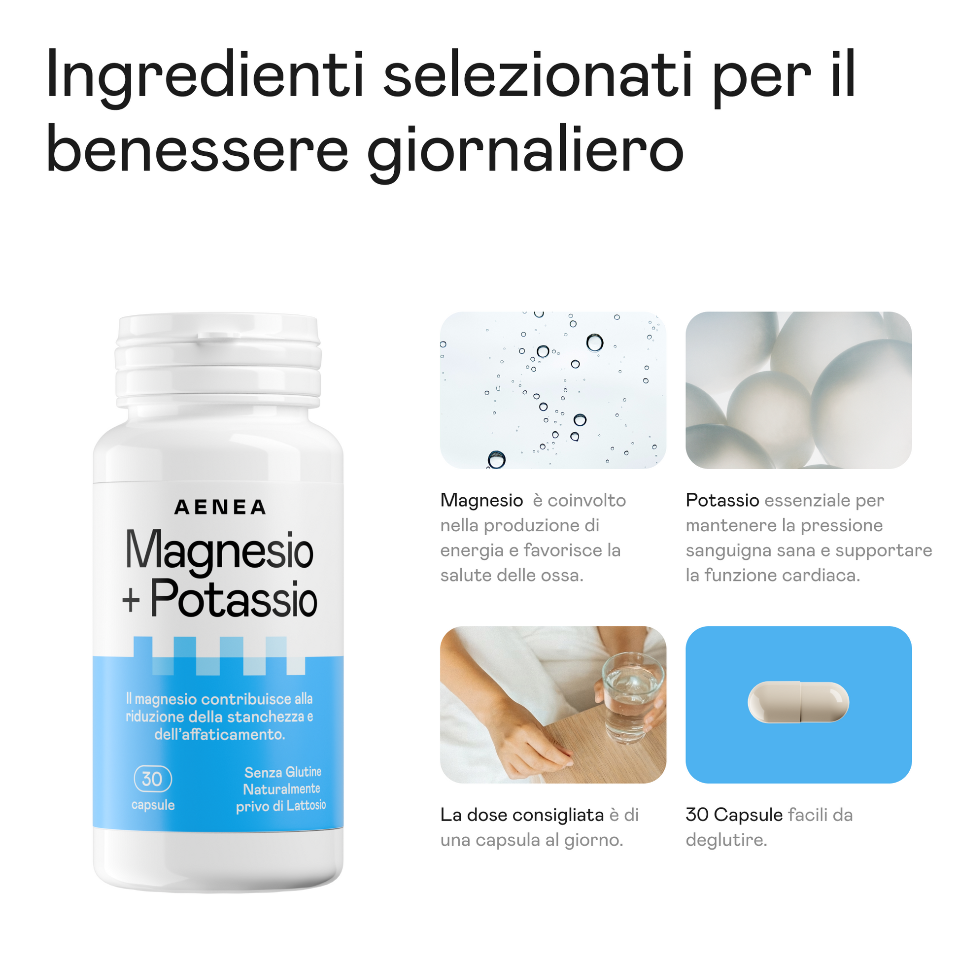 - Riduzione della stato di stanchezza e spossatezza: Il Magnesio e il Potassio sono due ingredienti fondamentali per supportarti in questo stato di continua stanchezza in cui puoi trovarti, aiutandoti a ritrovare il tuo naturale equilibrio e l'energia giusta per affrontare le sfide quotidiane