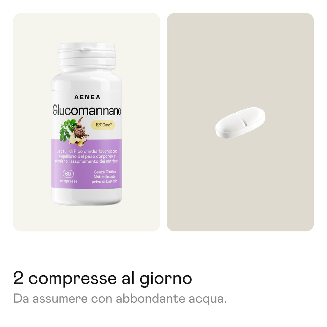- 2 compresse al giorno di Glucomannano , appena prima dai pasti principali (pranzo e cena)