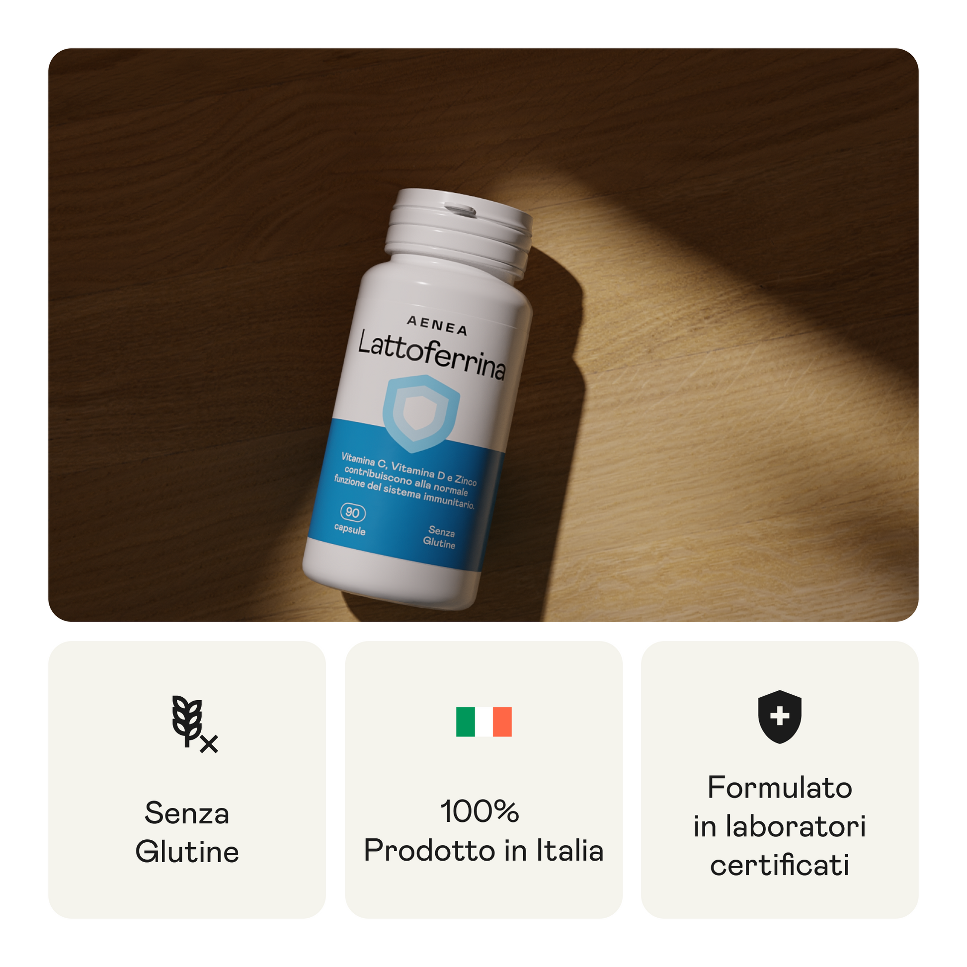 - Ingredienti: Lattoferrina, Vitamina C, Vitamina D3, Zinco gluconato