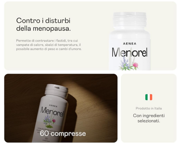 Menorel offre un valido aiuto contro i fastidi di ciclo e menopausa. Grazie alla sua formulazione permette di combattere sintomi come vampate di calore, sbalzi di temperatura, aumento di peso e cambi d'umore. Favorisce inoltre il mantenimento dello stato di rilassamento, placando eventuali squilibri inattesi che potrebbero presentarsi