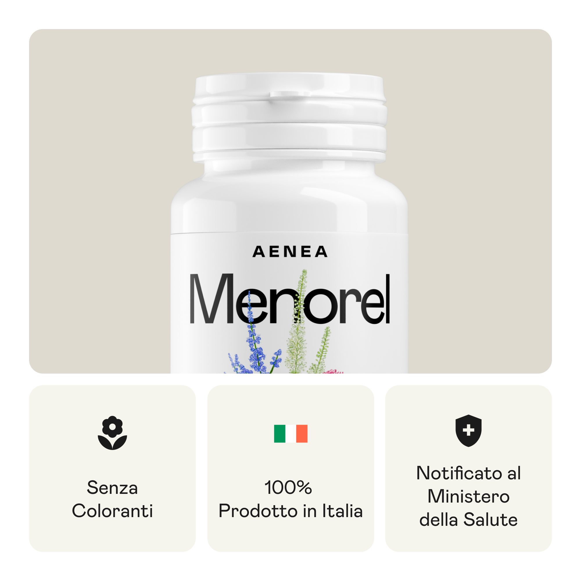 La formulazione di Menorel è a base completamente naturale e contiene ingredienti utili per contrastare i fastidi tipici che si possono presentare durante il ciclo