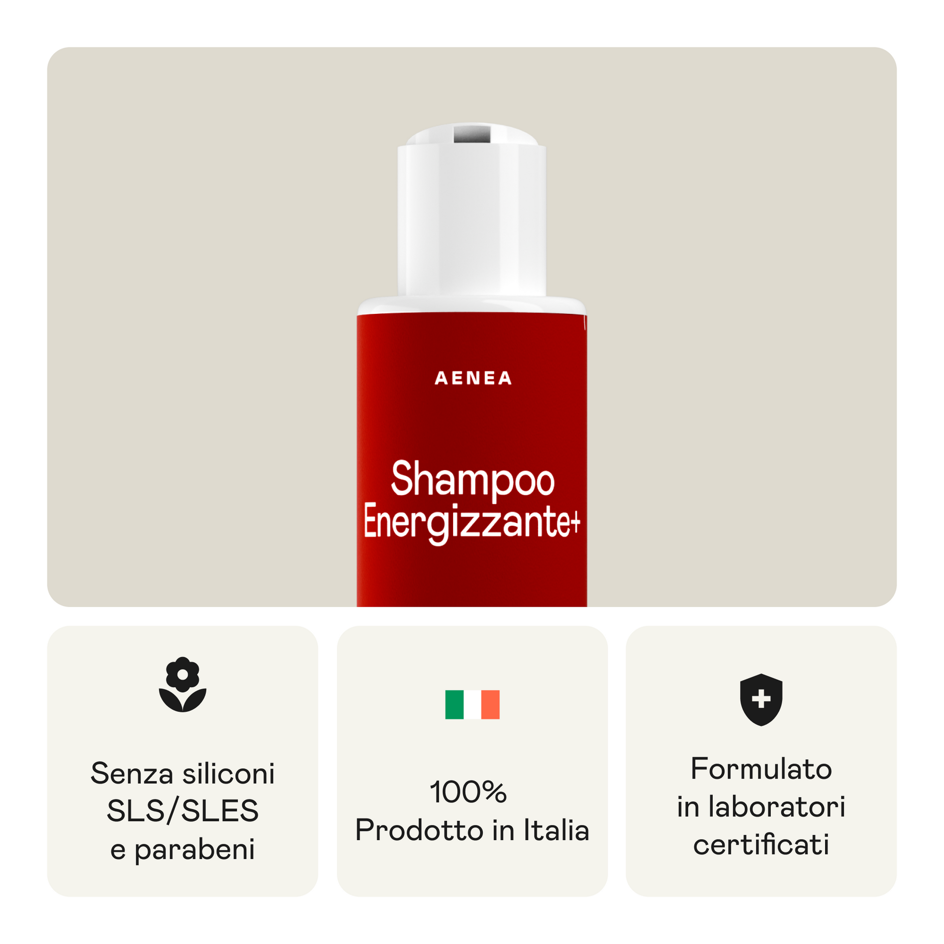 Lo Shampoo Aenea unisce tre attivi riconosciuti in tricologia per la loro efficacia: